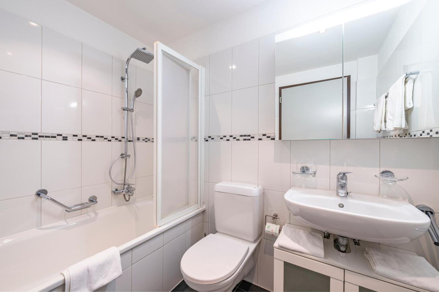 One-Bedroom Apartment. Boasting a private entrance, this air-conditioned apartment features 1 living room, 1 separate bedroom and 1 bathroom with a bath and a shower. The well-fitted kitchen has a stovetop, a refrigerator, a dishwasher and kitchenware. The spacious apartment features a flat-screen TV with cable channels, a washing machine, soundproof walls, a tea and coffee maker as well as garden views. The unit has 2 beds.